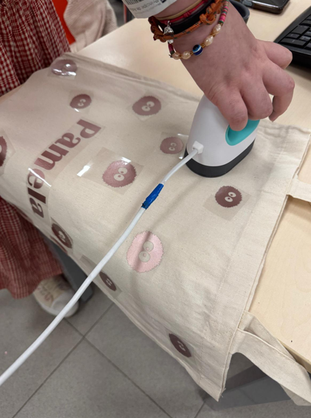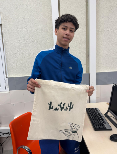 Durante el taller, los alumnos y alumnas han trabajado desde el diseño inicial de sus ideas hasta la producción final de las bolsas. En primer lugar, crearon sus propios diseños gráficos, aplicando nociones de composición, tipografía e ilustración digital. Posteriormente, esos diseños fueron cortados con la cortadora de vinilo y preparados para su aplicación.