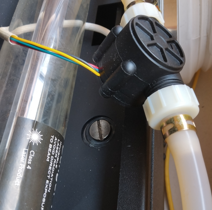 El láser de la cortadora alcanza altísimas temperaturas, lo que nos permite cortar o grabar materiales muy diversos con facilidad y de forma rápida, pero para que la máquina alcance estas temperaturas y siga siendo segura, necesita de un sistema de refrigeración. Este sistema debe ser rellenado con agua destilada cuando la propia cortadora nos dé el aviso.