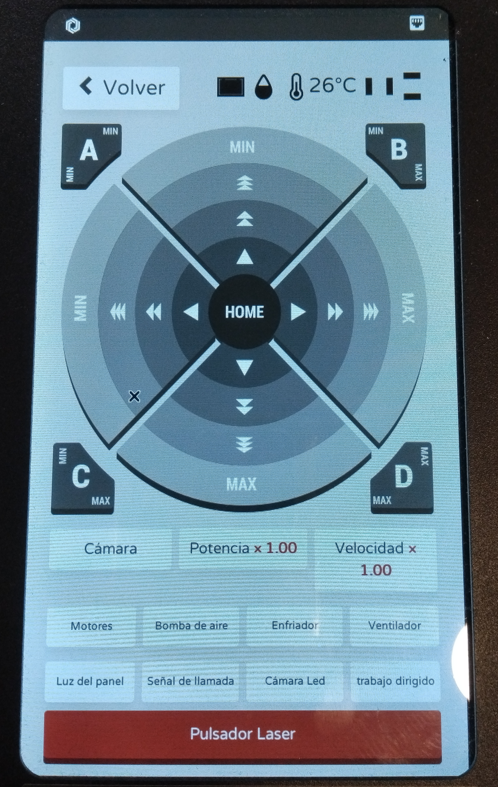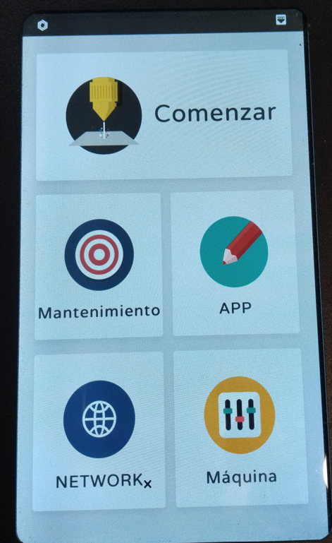 A continuación, volvemos a poner el tapón, cerramos la tapa de acceso y podemos encender nuestra cortadora. En el menú principal, accedemos a la opción «Mantenimiento» y, una vez allí, activamos la «Bomba de aire» durante unos minutos.