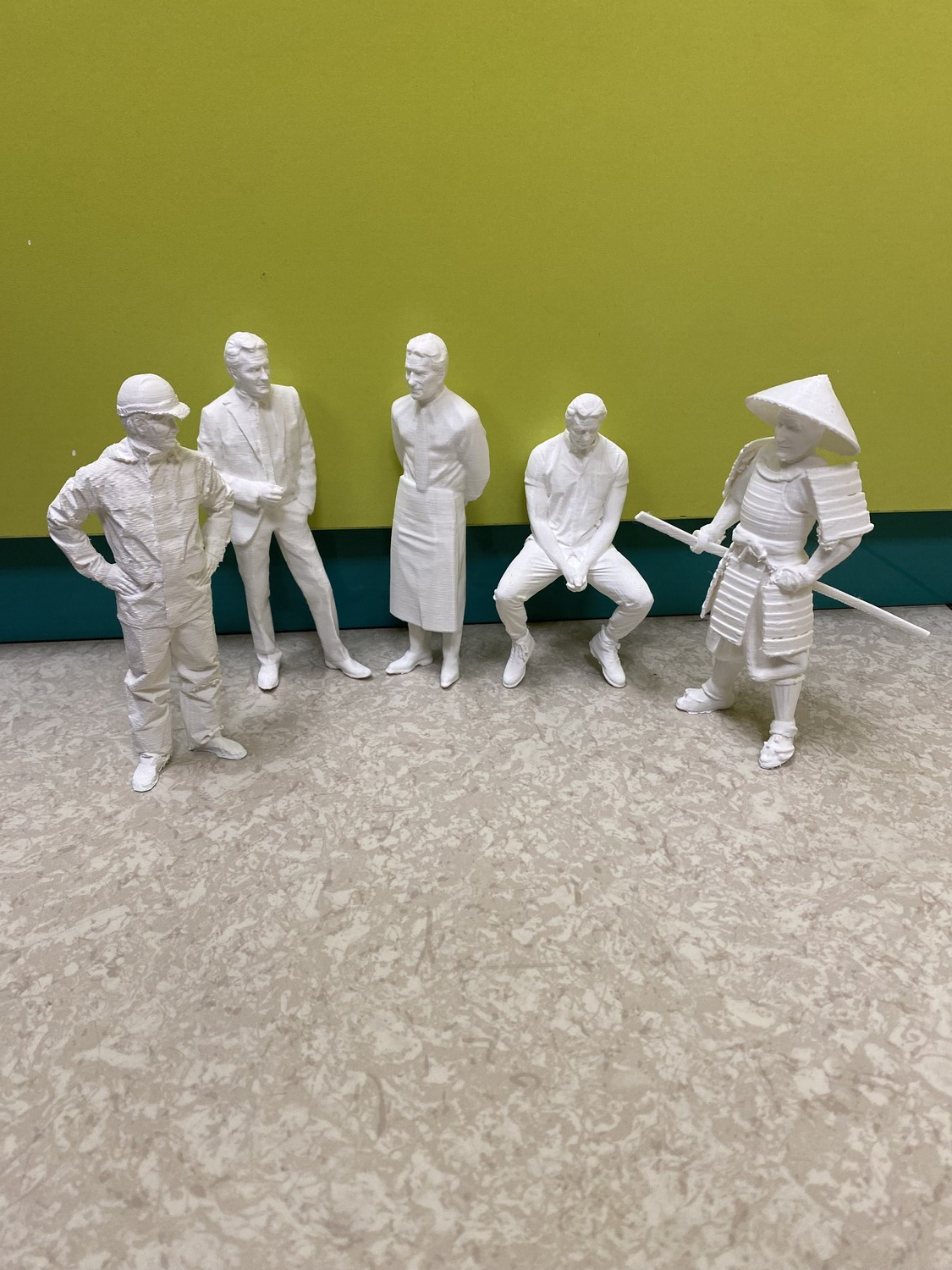 La fase final implica la supervisión de la impresión 3D, donde los estudiantes aprenden a identificar y solucionar problemas comunes como desplazamientos de capa o fallos en la adhesión a la base. El resultado es una colección de muñecos decorativos únicos que celebran la figura de Don Bosco.