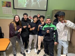 Los estudiantes cortaron los llaveros en metacrilato rojo, montaron las anillas y presentaron sus creaciones, reflexionando sobre el significado del regalo.